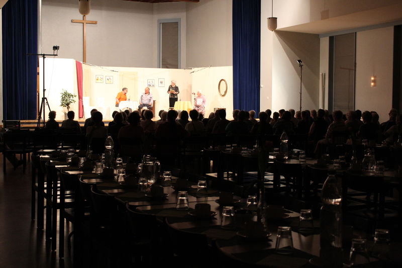 Im Rahmen des Programms 60plus im Westen durften wir heute die Theatergruppe Silberfüchse Toggenburg im evang. Kirchgemeindehaus Lachen begrüssen. Die Komödie Theaterfieber stiess beim Publikum auf grosse Begeisterung. Nach der Aufführung waren die Gäste sowie die Mitwirkenden des Laientheaters zu Kaffee und Kuchen eingeladen.