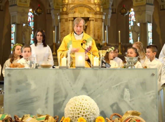 Die Kinder werden bei uns im Religionsunterricht in der 3. Klasse zum Sakrament der Eucharistie hingeführt und auf die Erstkommunion vorbereitet. An einem Sonntag nach Ostern wird das Fest gefeiert. Die Voraussetzung für den Empfang der Kommunion ist die Taufe.